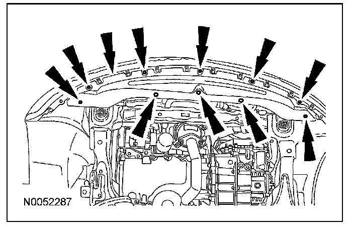 5. Remove the 3 LH subframe-to-lower bumper nuts and separate the lower bumper from the subframe.