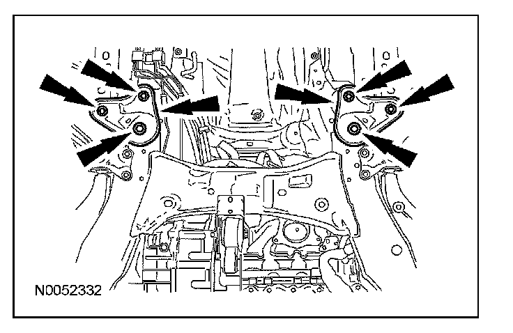 - During installation, the subframe brackets are loosely installed with the support bracket bolts. Tighten the rear subframe nuts prior to tightening the support bracket bolts.