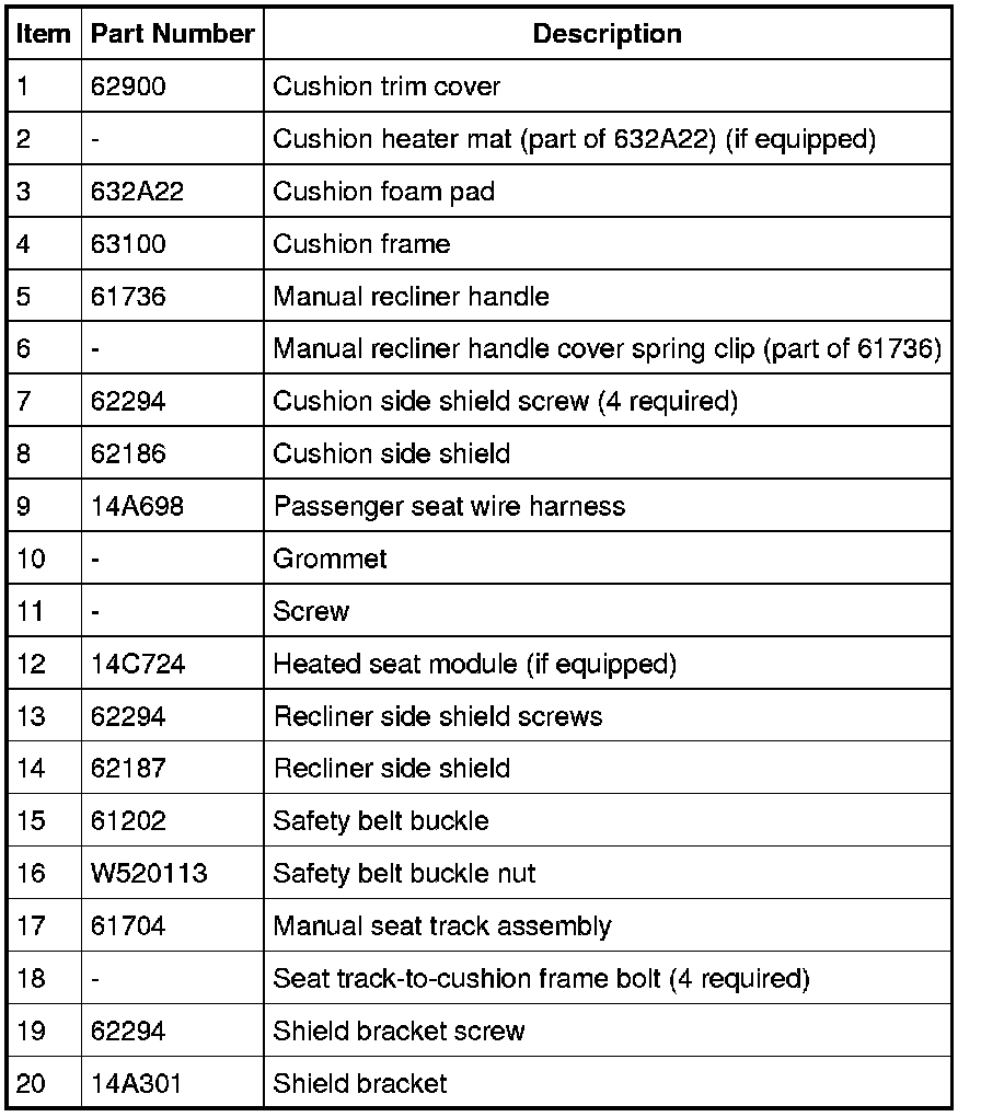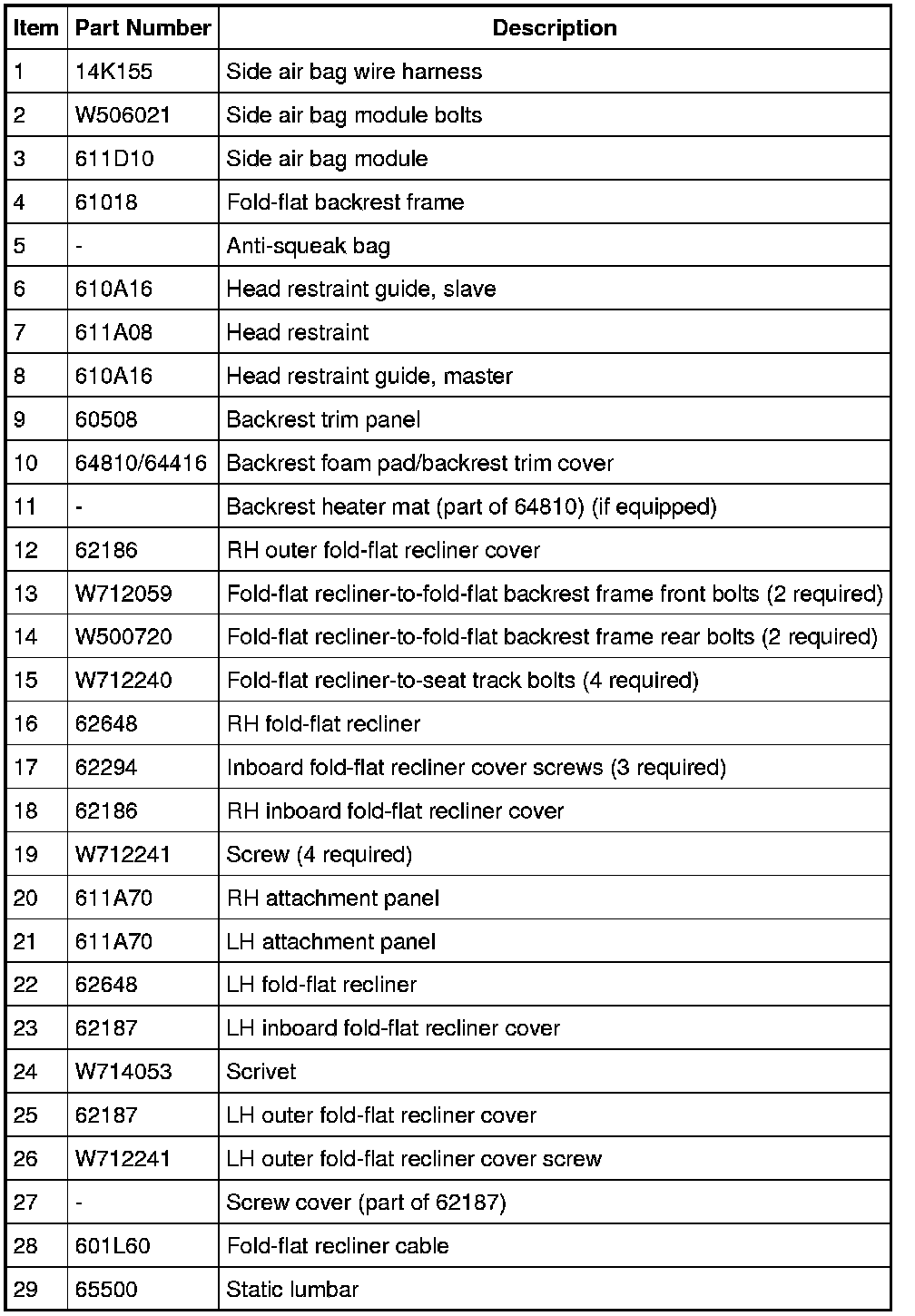 NOTE: To install a new Occupant Classification System Module (OCSM) or an Occupant Classification Sensor (OCS) weight sensor bolt, refer to the appropriate procedure in Air Bag Systems.
