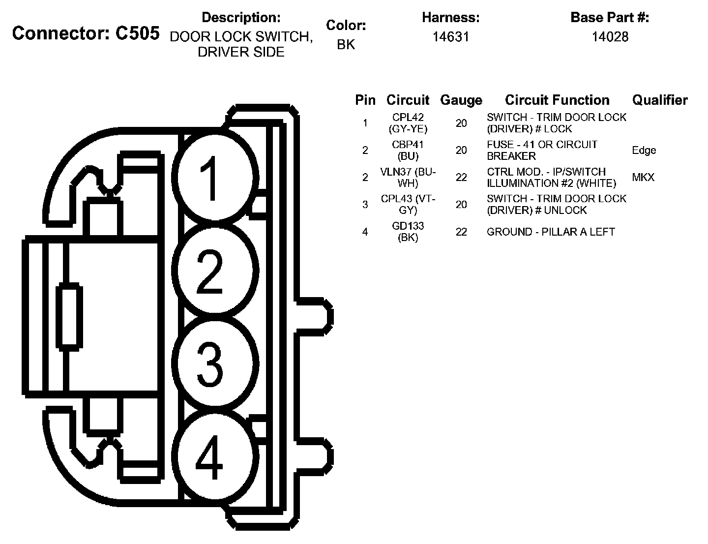 Door Lock Switch, Driver Side