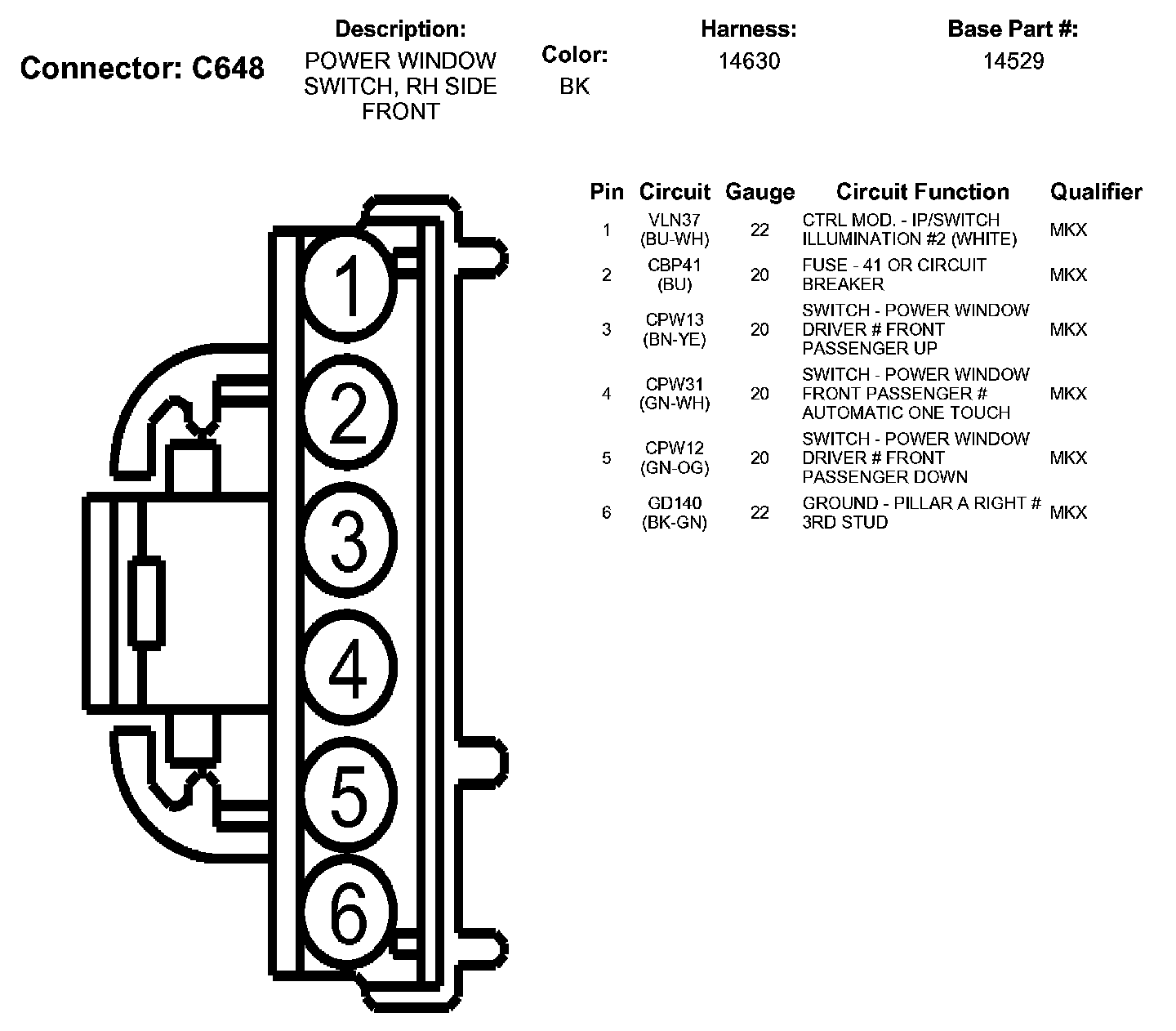 Power Window Switch, RH Side Front