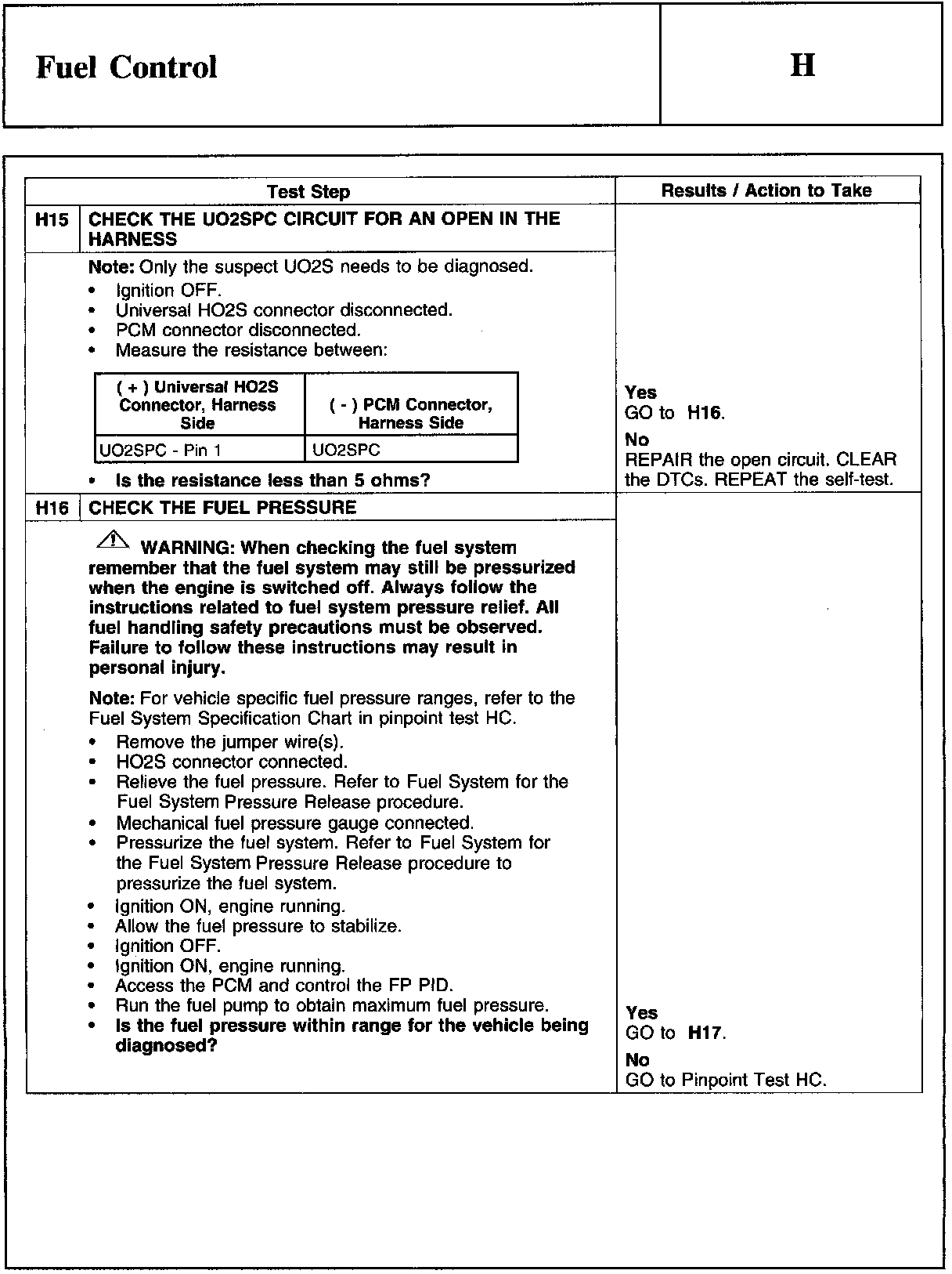 PINPOINT TEST H: FUEL CONTROL
