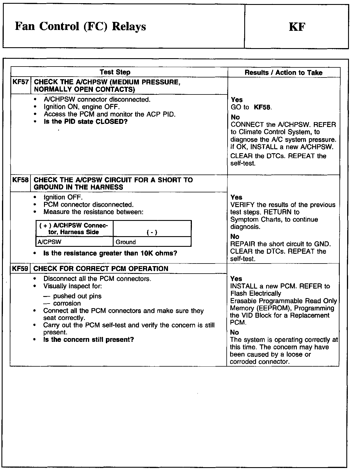 PINPOINT TEST KF: FAN CONTROL (FC) RELAYSThree Speed Fan Operation And Low Fan Control Relay Connector: