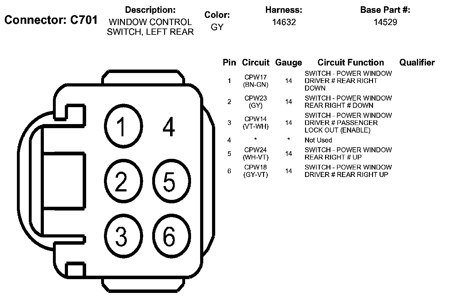 Window Control Switch, Left Rear