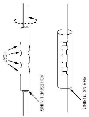 13. Use shielded heat gun to heat the repaired area until adhesive flows out of both ends of the heat shrink tubing.