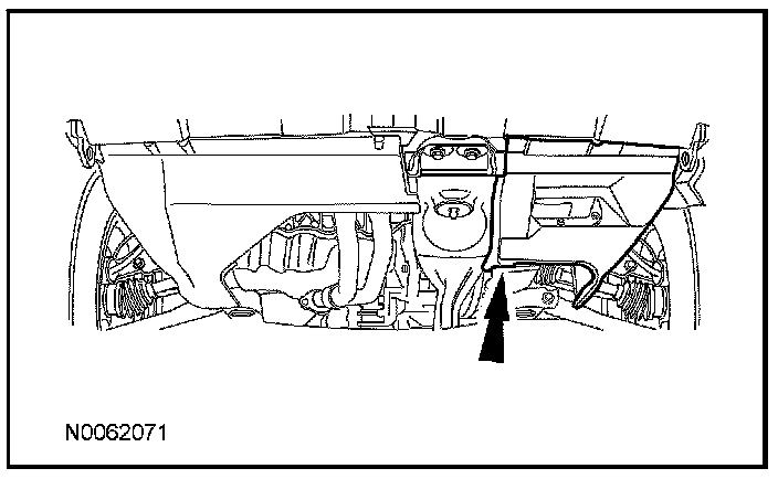 9. Remove the 6 bolts and the scrivet from the LH splash shield and remove the splash shield.