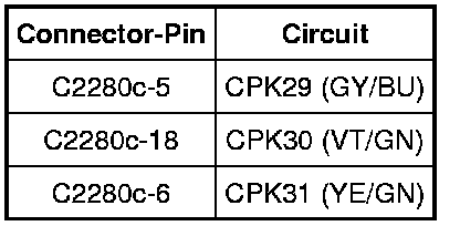 H8 CHECK CIRCUITS CPK29 (GY/BU), CPK30 (VT/GN) AND CPK31 (YE/GN) FOR AN OPEN