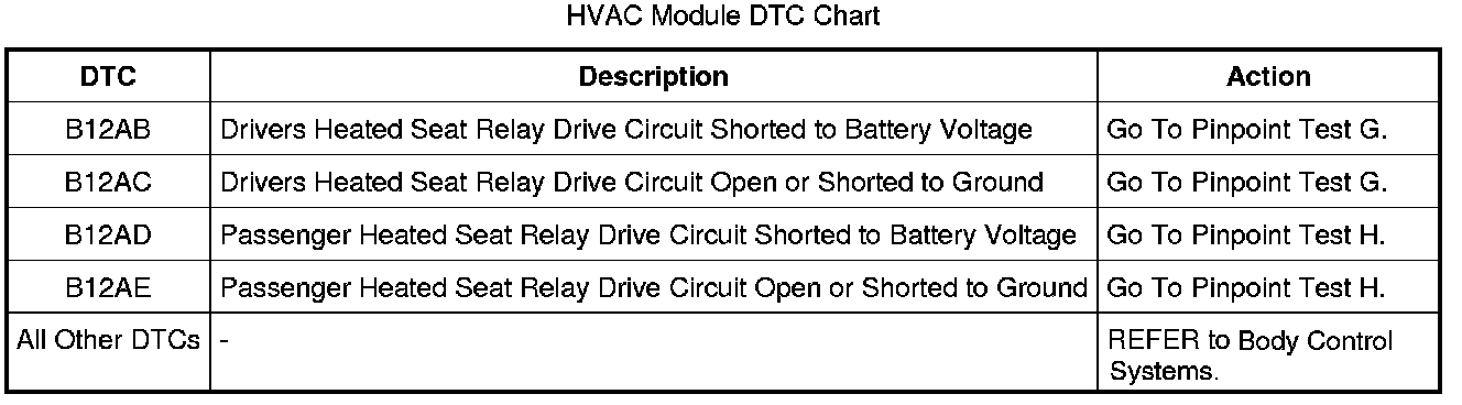 Only heated seat system related DTCs are listed. For all other HVAC module DTCs, refer to