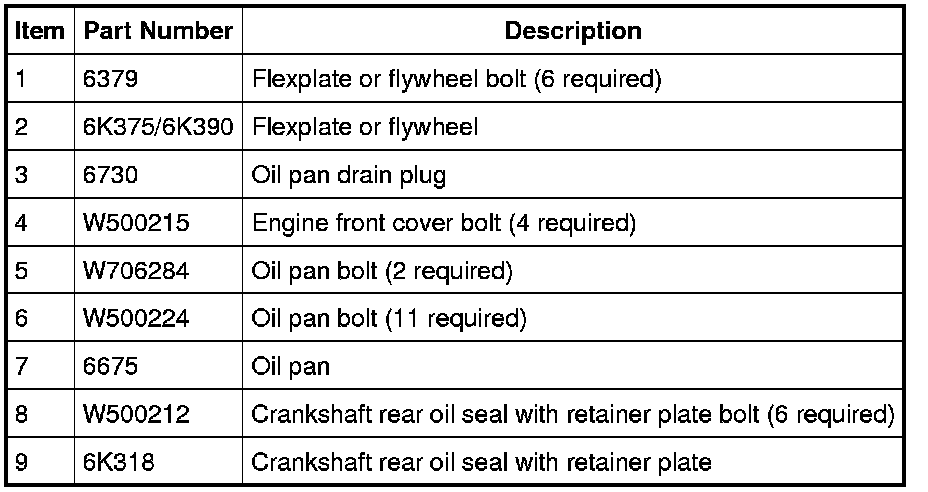 Lower End Components - Exploded View, Flexplate, Flywheel and Crankshaft Rear Seal