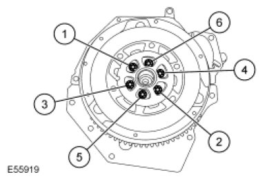 30. Tighten the dual mass flywheel retaining bolts in the sequence shown to 112 Nm (83 lb-ft).