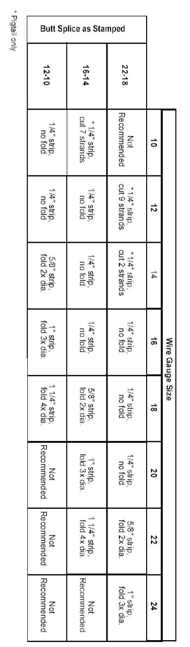 Recommended splicing method - Crimp (For 10-22 AWG Diameter Wire to Like Wire Diameter)