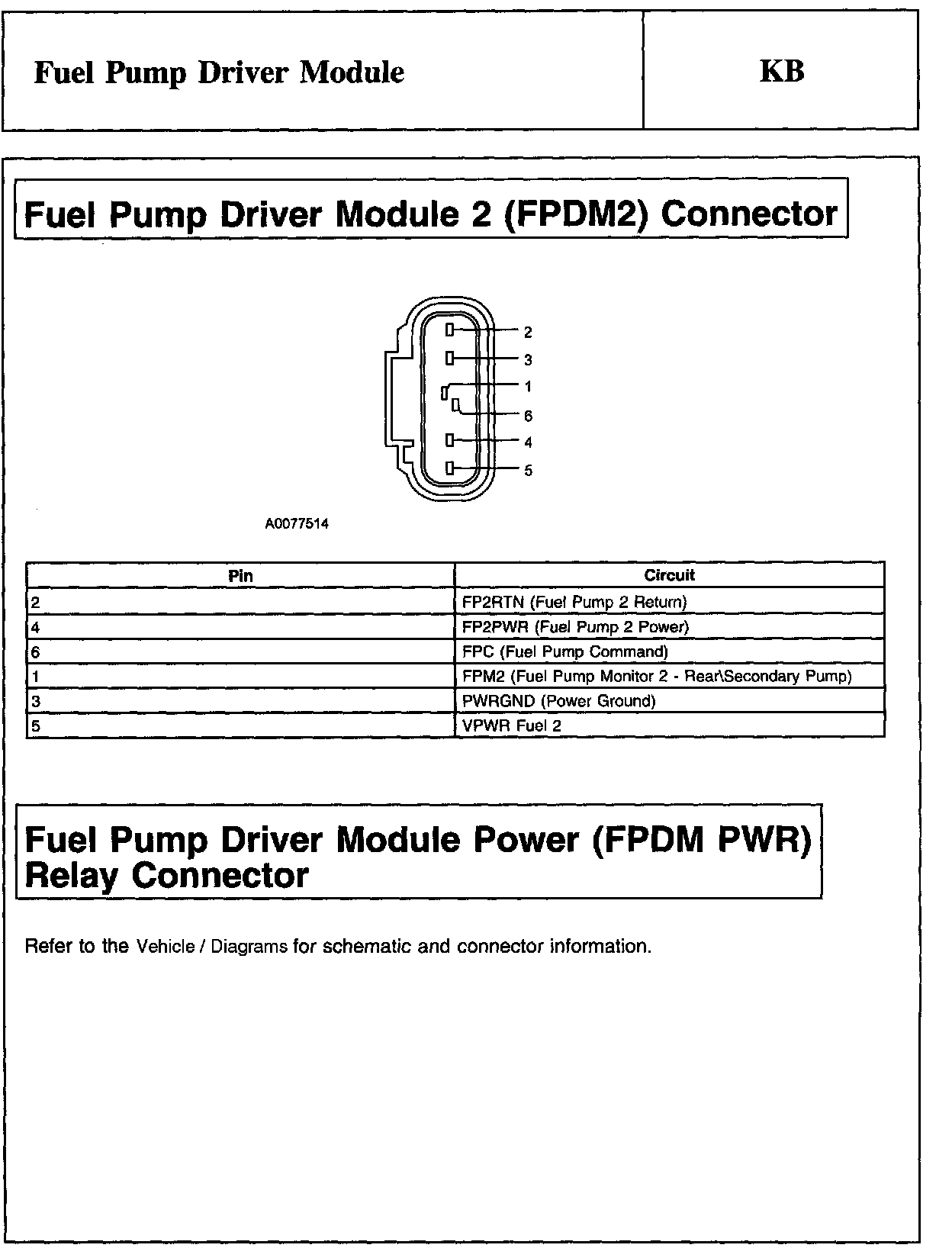 Fuel Pump Driver Module 2 And Fuel Pump Driver Module Power Relay Connector: