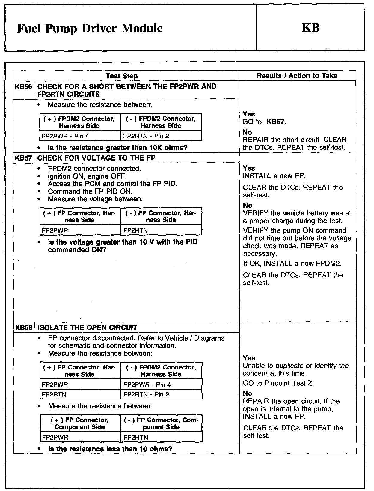 PINPOINT TEST KB: FUEL PUMP DRIVER MODULE