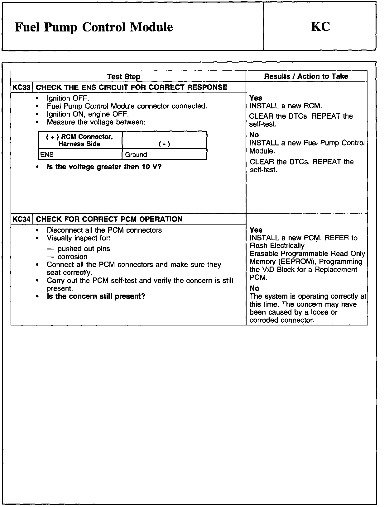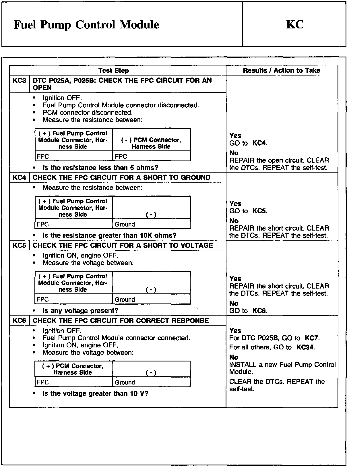 PINPOINT TEST KC: FUEL PUMP CONTROL MODULE