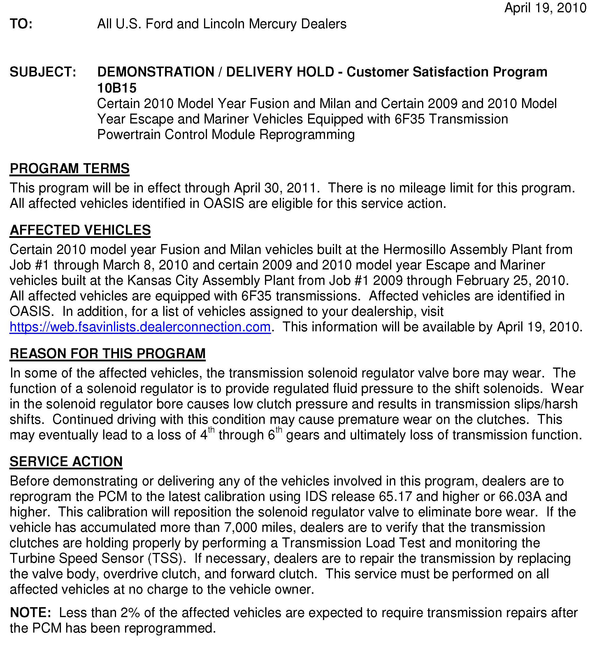Campaign - ECM Update For A/T Durability