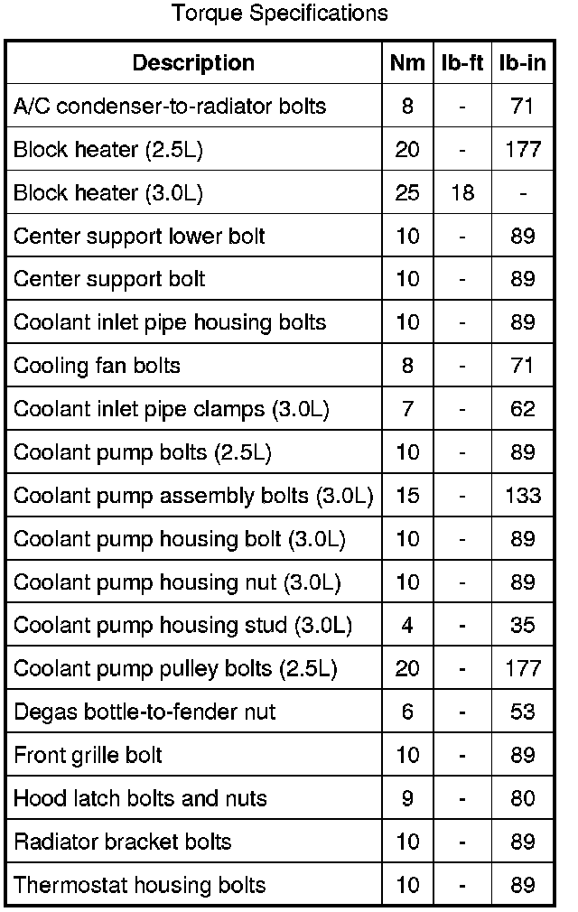 Torque Specifications