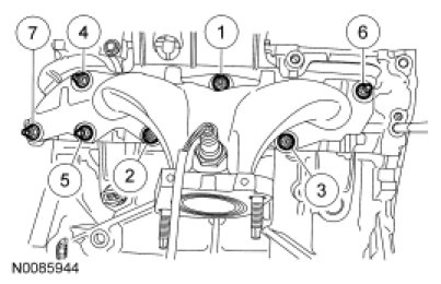 Position the exhaust manifold and tighten the 7 new exhaust manifold nuts in the sequence shown in 2 stages: