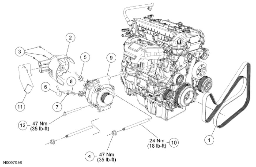 7. Working from under the vehicle, install the lower generator bolt hand-tight.