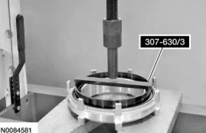 13. Position the forward (1, 2, 3, 4) clutch piston on Seal Protector 307-628/2 and Seal Protector 307-629 and push it down into the center support.