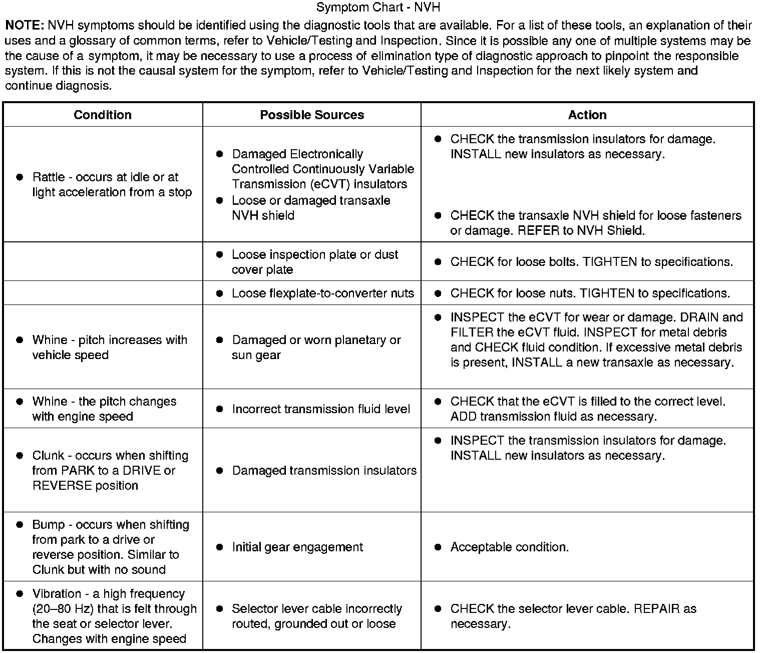 Symptom Chart - NVH: