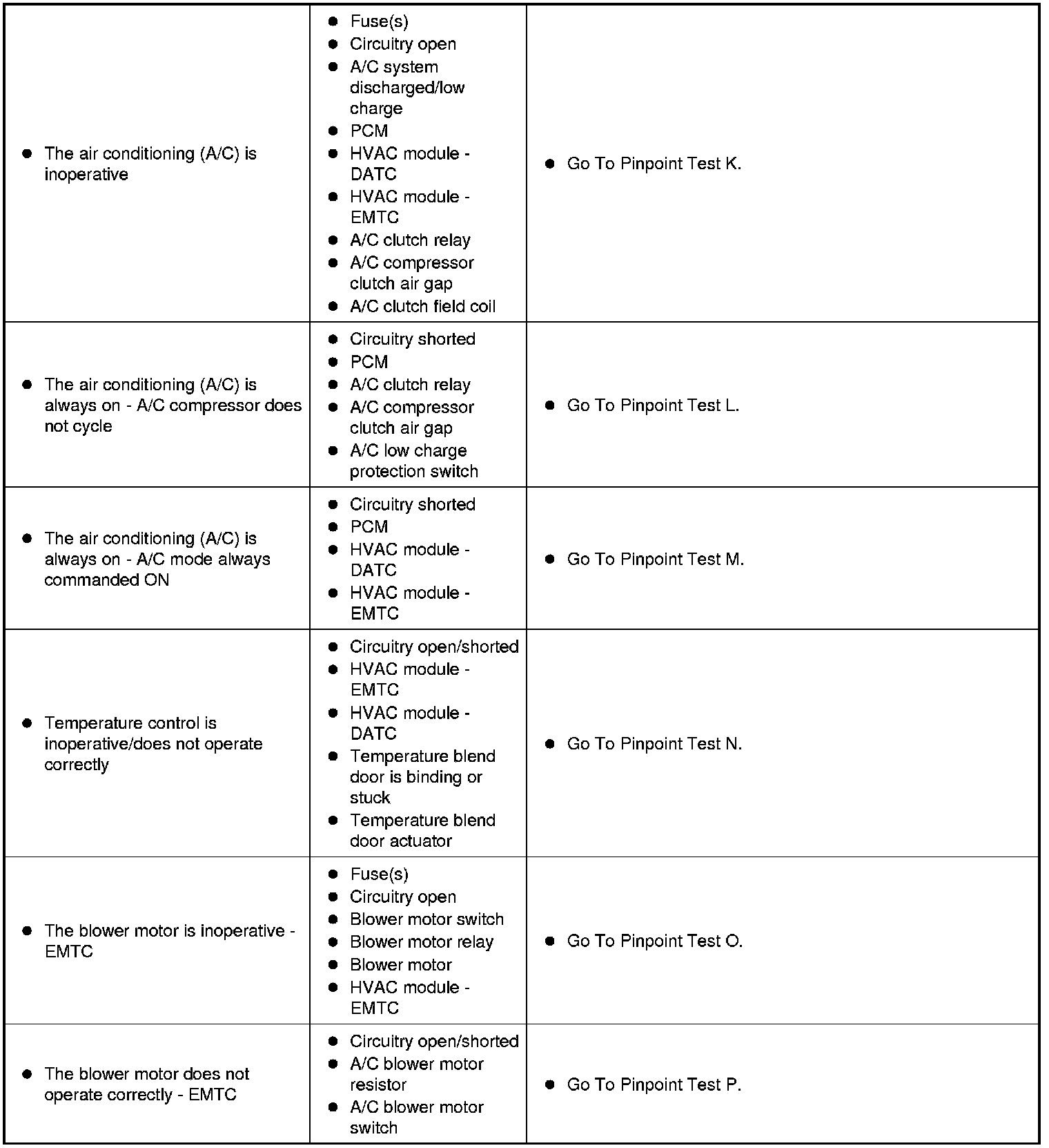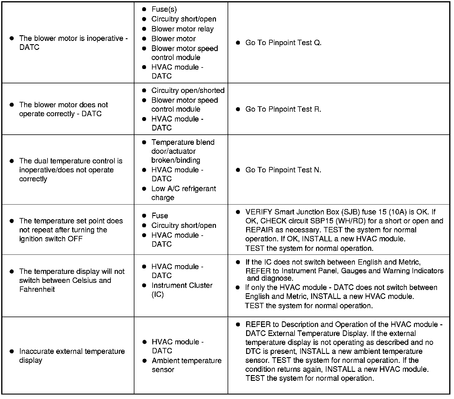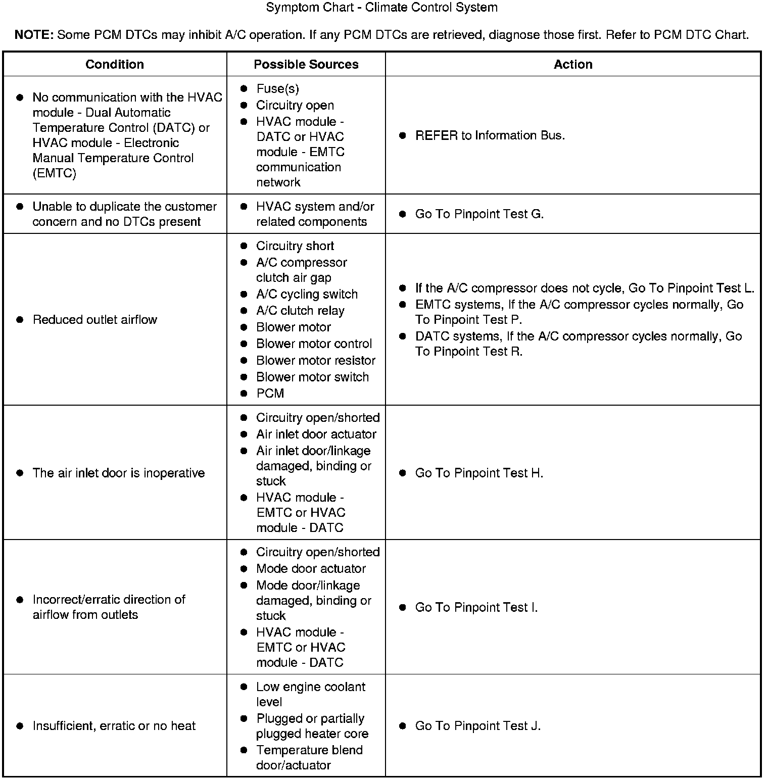 Symptom Chart - Climate Control System