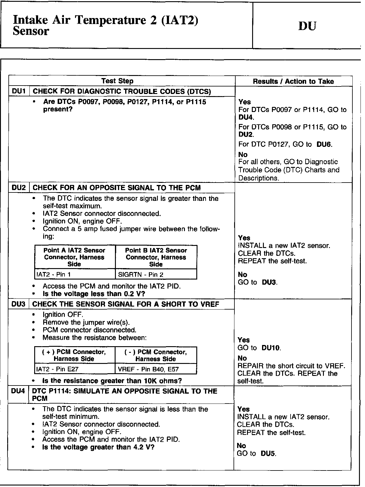 PINPOINT TEST DU: INTAKE AIR TEMPERATURE 2 (IAT2) SENSOR