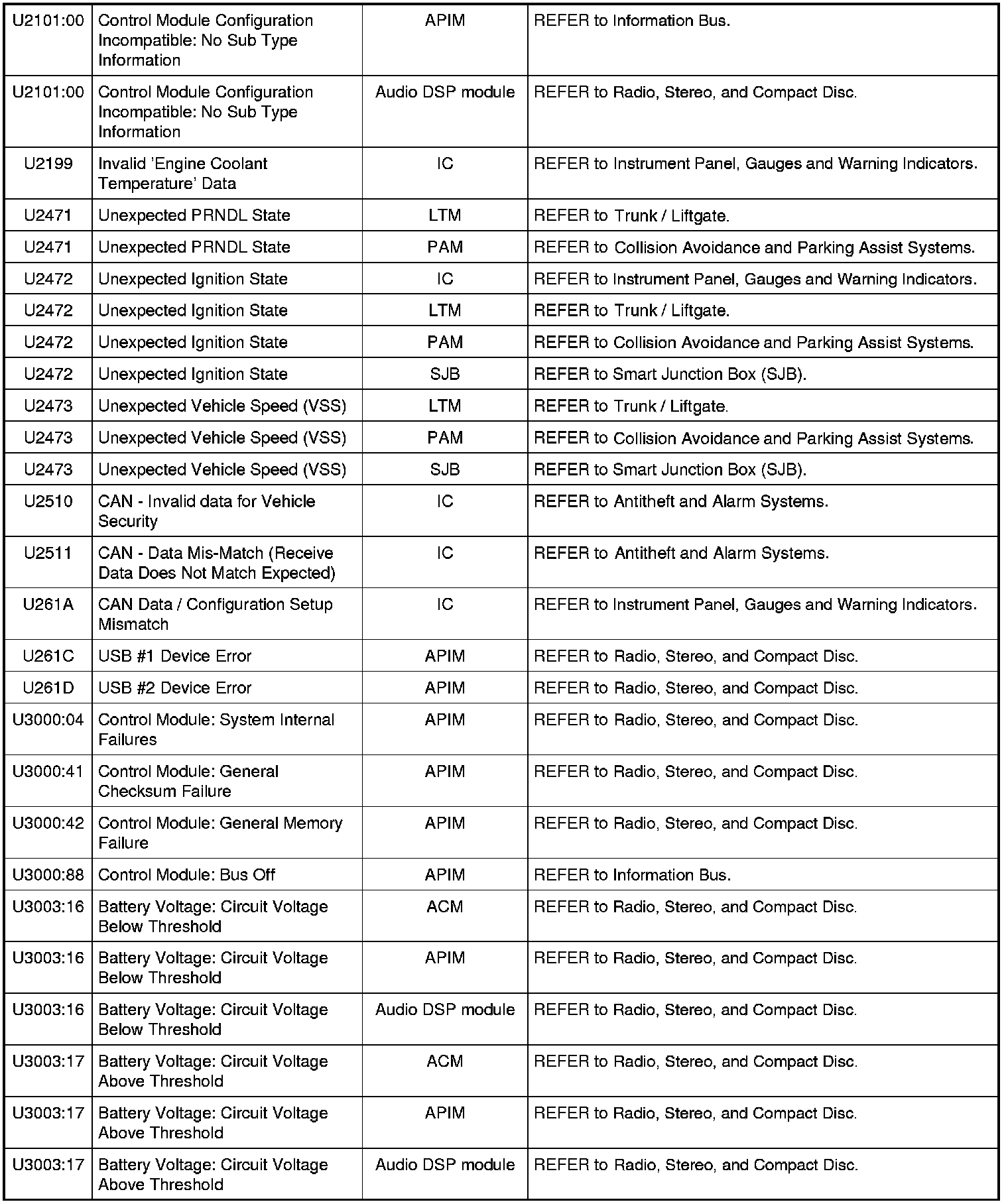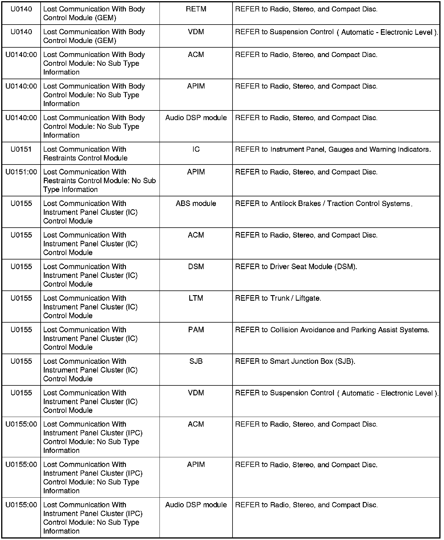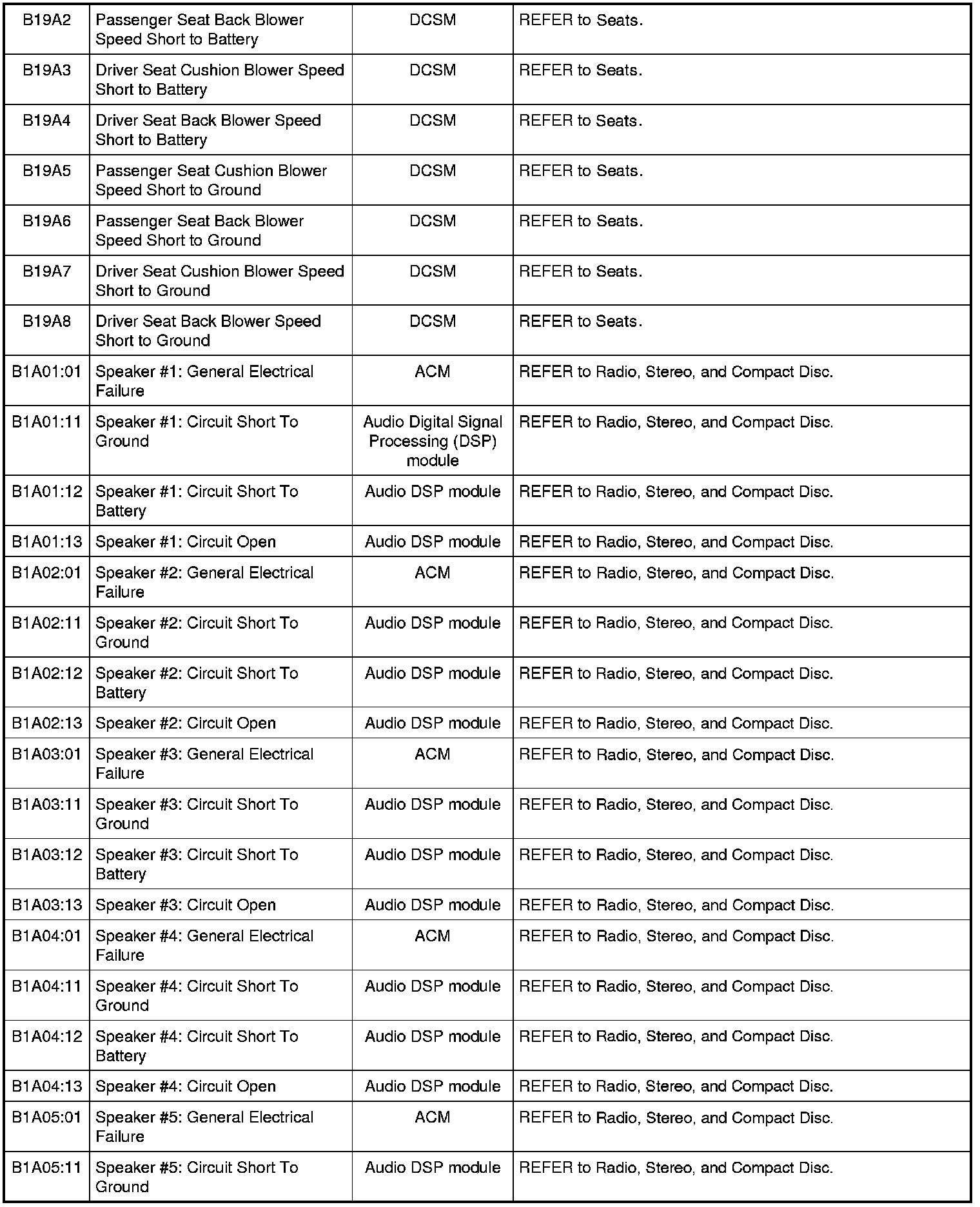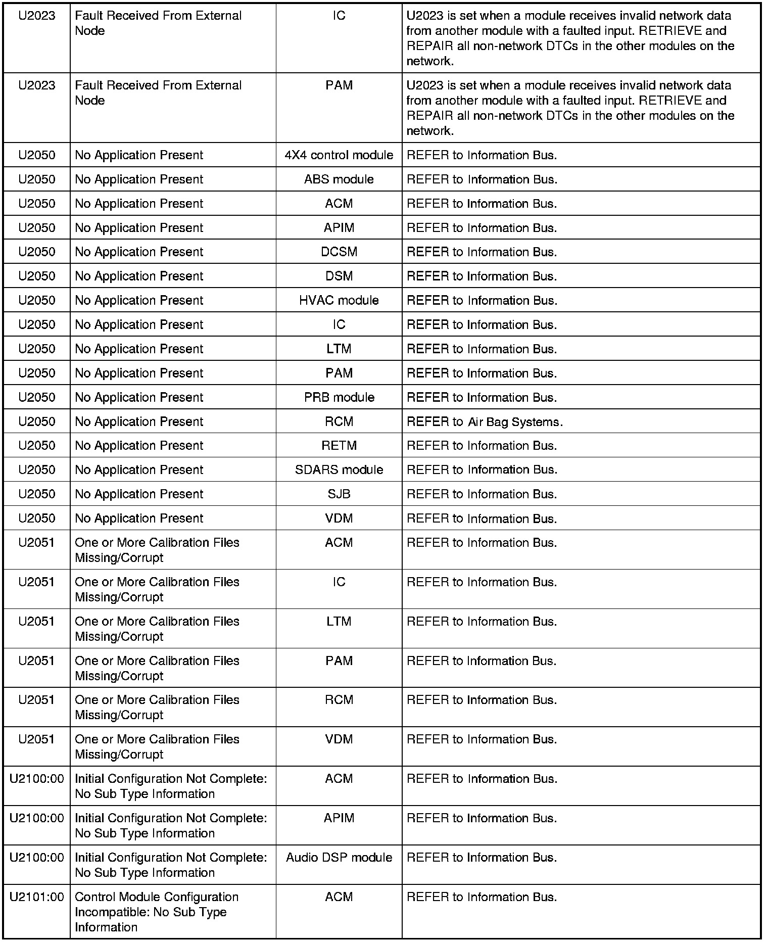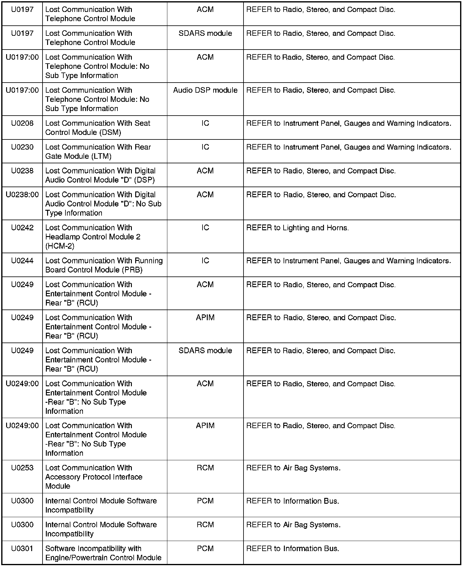 Home >> Ford >> 2009 >> Expedition 2WD V8-5.4L >> Repair and Diagnosis >> Body and Frame >> Body Control Systems >> Testing and Inspection >> Diagnostic Trouble Code Descriptions >> Diagnostic Trouble Code (DTC) Chart