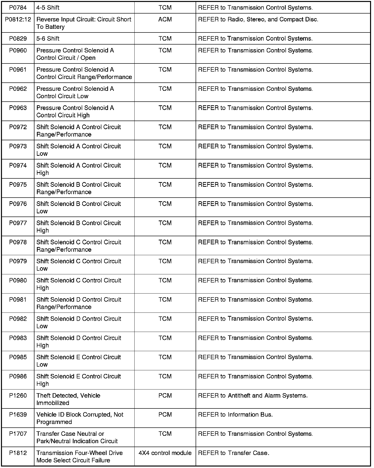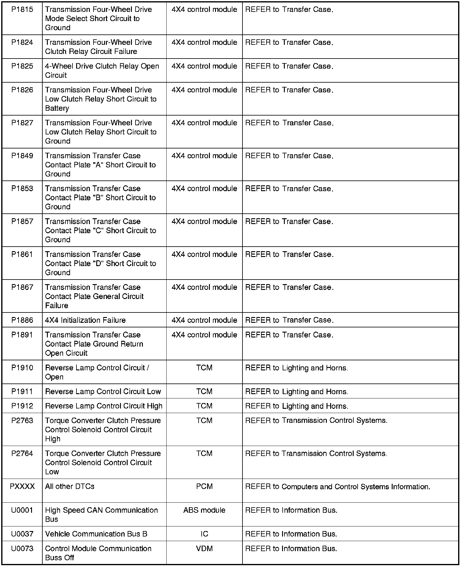 NOTE: Most powertrain (P-code) DTCs are diagnosed in Computers and Control Systems Information. If the P-code retrieved is not listed below, refer to Computers and Control Systems Information to continue diagnostics.