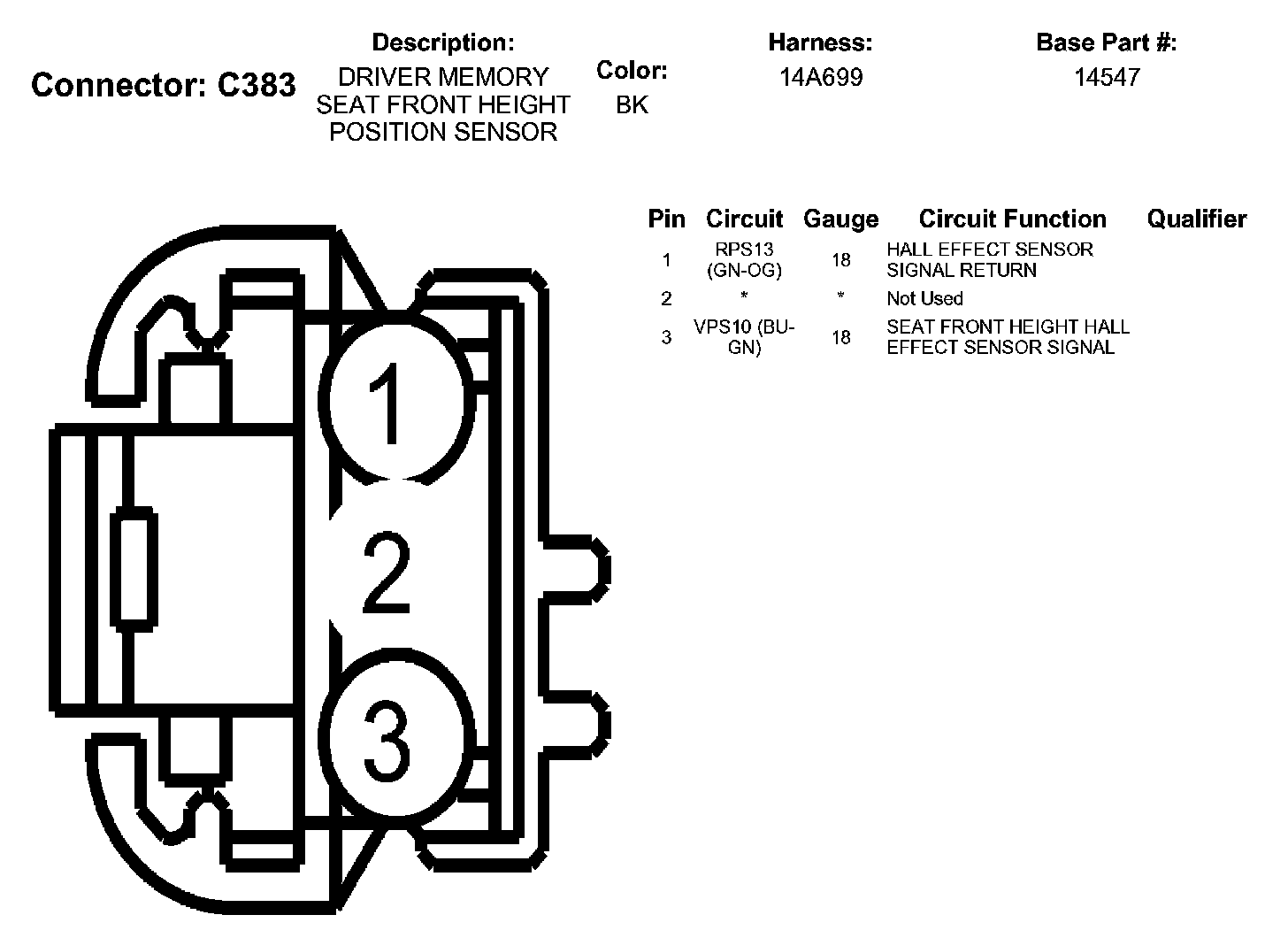 Driver Memory Seat Front Height Position Sensor
