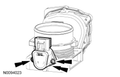 1. NOTE: When installing the new TP sensor, make sure that the radial locator tab on the TP sensor is aligned with the radial locator hole on the ETB.