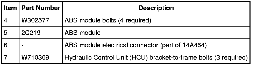 NOTE: On vehicles equipped with RSC(R), the ABS module is available separately from the HCU and should be serviced separately. However, if the RSC(R)-equipped vehicle requires a new HCU, then the ABS module and the HCU must be installed as an assembly. Make sure to use the most recently released service parts.