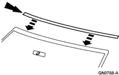 NOTE: Avoid scratching the pinch weld. Repair all minor scratches or exposed metal on the pinch weld following manufacturer's instructions. Use the same brand pinch weld primer, glass primer and urethane adhesive.