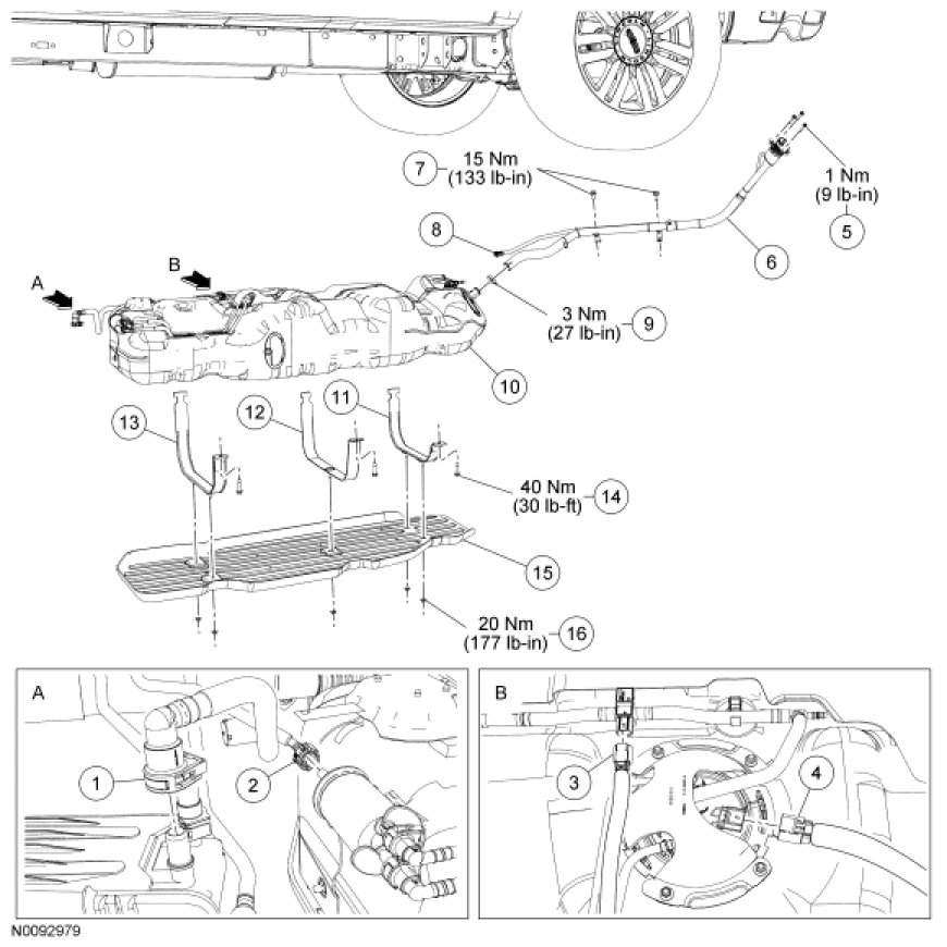 Fuel Tank and Filler Pipe - Exploded View