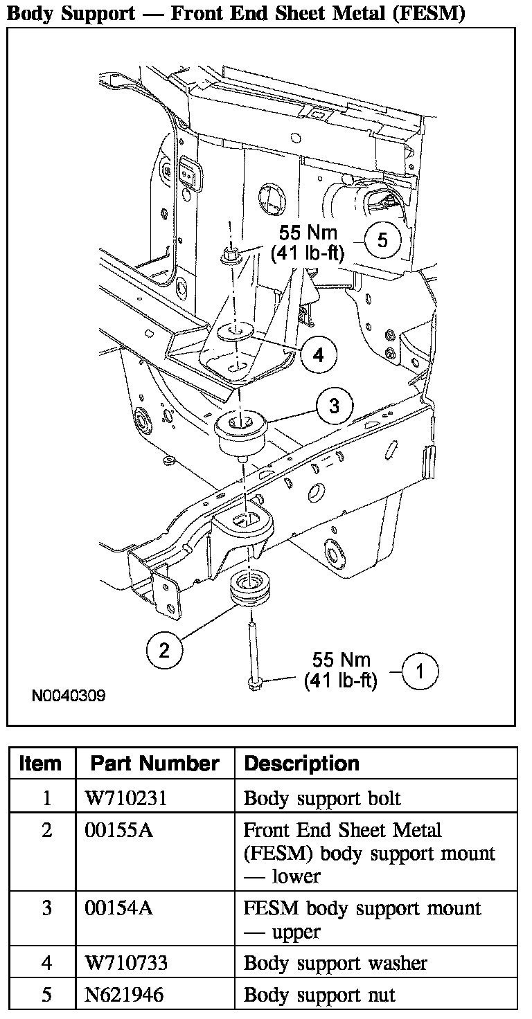 - Do not reuse body support mounting fasteners. New fasteners must be installed for each fastener that has been removed or loosened.