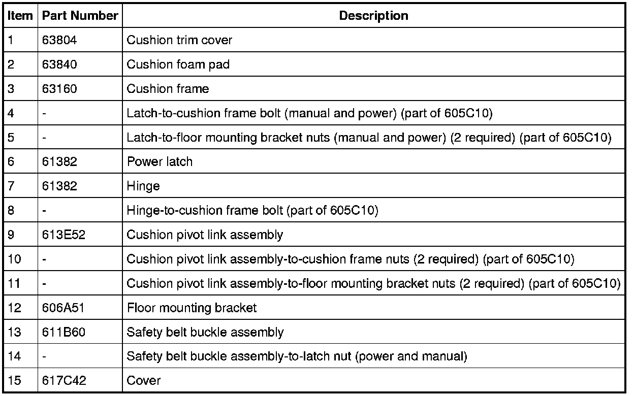 Home >> Ford >> 2009 >> Explorer 2WD V6-4.0L >> Repair and Diagnosis >> Body and Frame >> Seats >> Service and Repair >> Third Row Seating >> Seat - Exploded View, Third Row