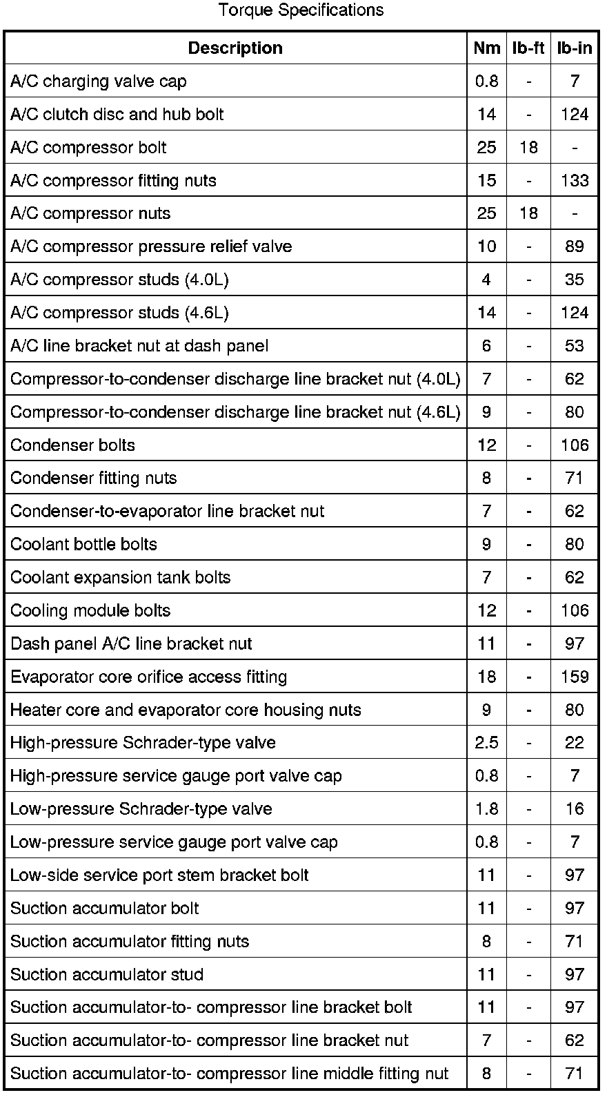 Torque Specifications