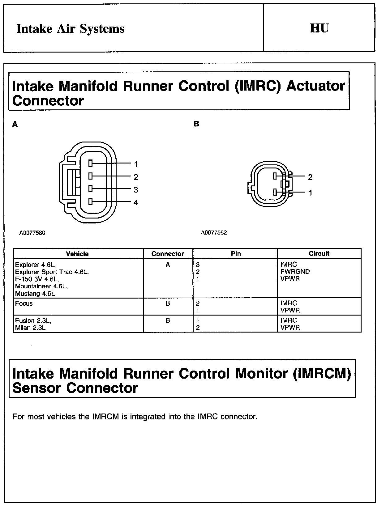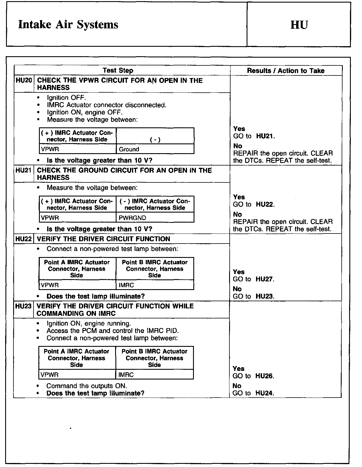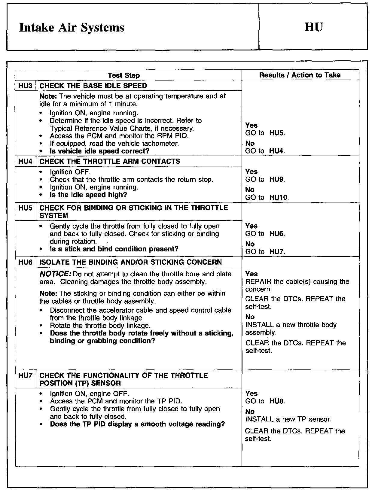 Home >> Ford >> 2009 >> Explorer 2WD V6-4.0L >> Repair and Diagnosis >> Powertrain Management >> Computers and Control Systems >> Testing and Inspection >> Pinpoint Tests >> HU - Intake Air Systems