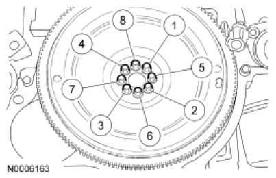 Tighten the 8 new bolts in the sequence shown in 3 stages.