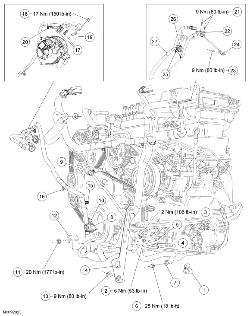 20. Remove the nut and position the battery cable body ground terminal aside.