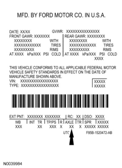 The Vehicle Certification (VC) label contains information on the manufacturer name, the month and year of manufacture, the certification statement and the Vehicle Identification Number (VIN). This label also includes Gross Vehicle Weight Rating (GVWR) information.