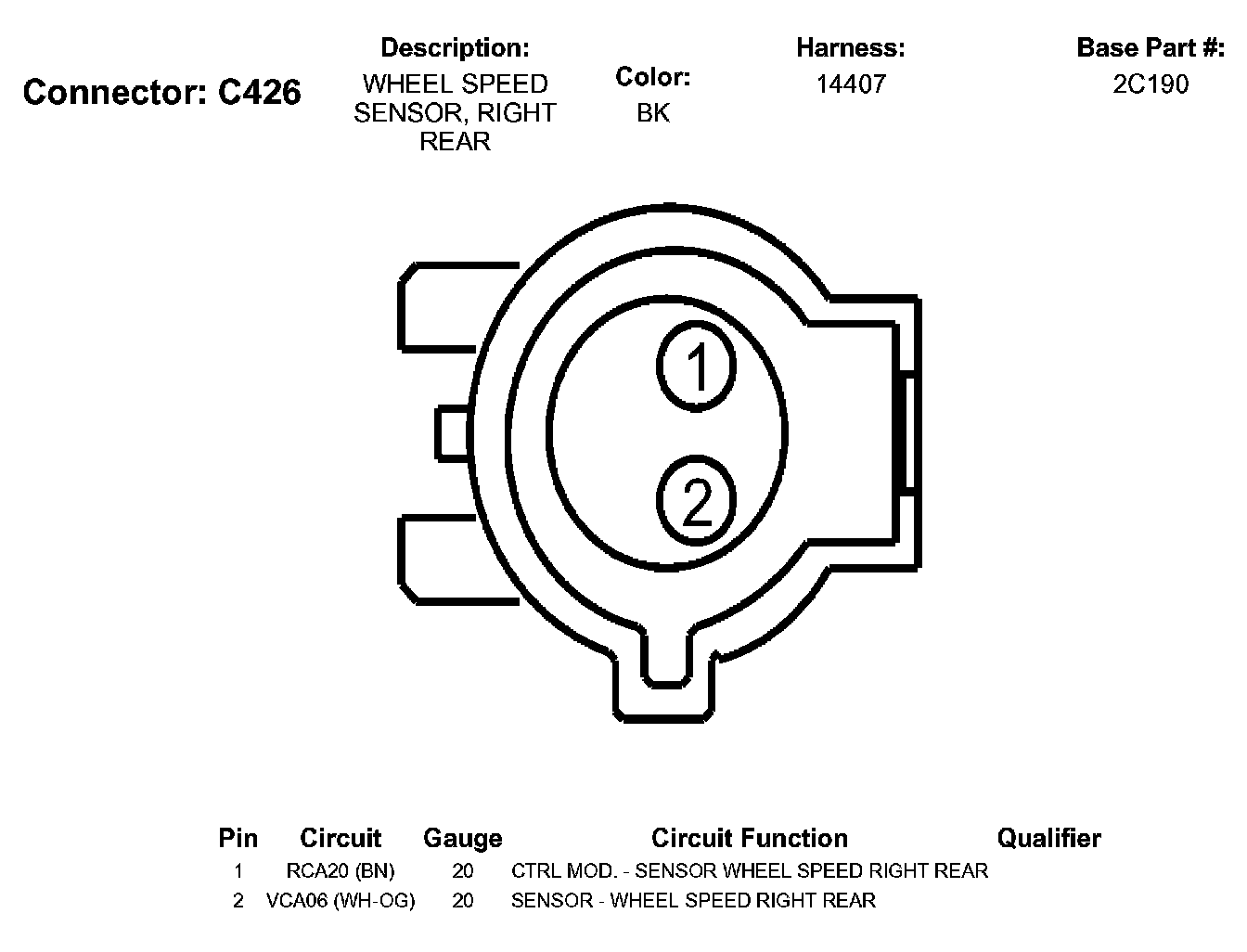 Wheel Speed Sensor, Right Rear