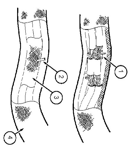 Remove the tape and flex/feel each circuit for a reduction in diameter at break.