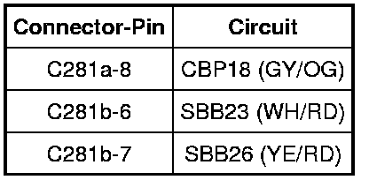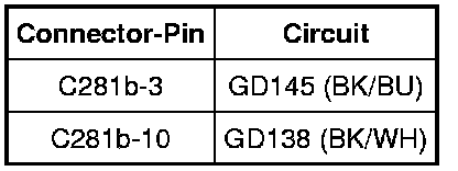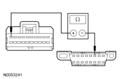 - Measure the resistance between the 4X4 control module C281a-9, circuit VDB05 (WH), harness side and the DLC C251-14, circuit VDB05 (WH), harness side.