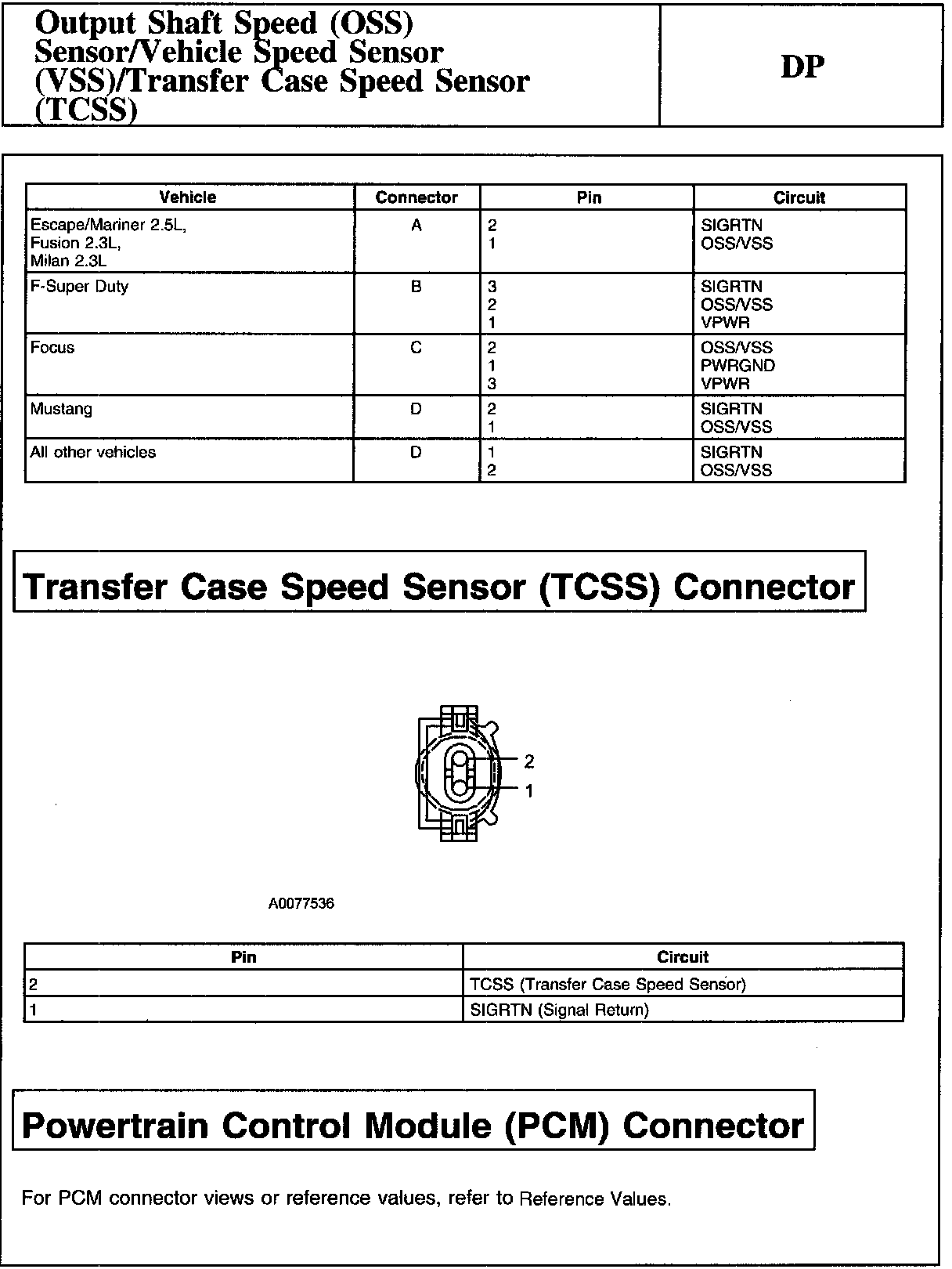 DP - Output Shaft Speed (OSS) Sensor/Vehicle Speed Sensor (VSS)/Transfer Case Speed Sensor (TCSS)