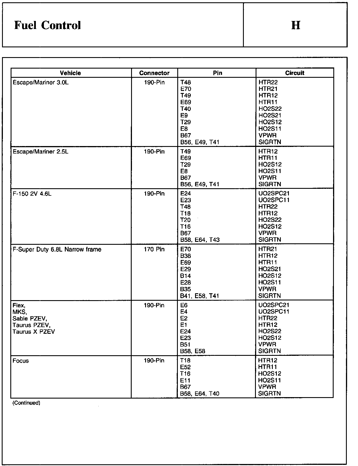 Home >> Ford >> 2009 >> Explorer 2WD V8-4.6L >> Repair and Diagnosis >> Powertrain Management >> Computers and Control Systems >> Testing and Inspection >> Pinpoint Tests >> H - Fuel Control