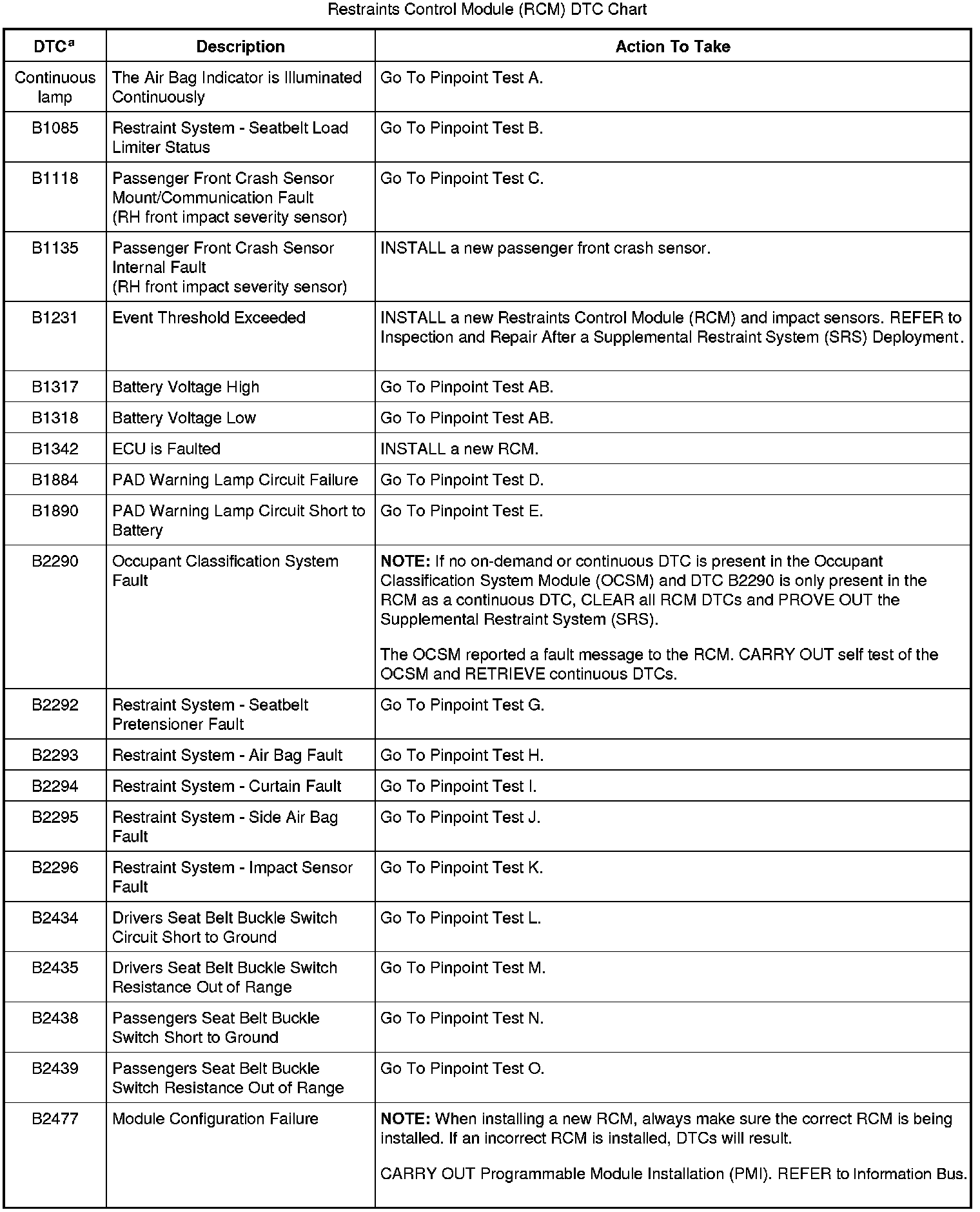 The DTCs can be retrieved from the RCM and the OCSM with a scan tool via the DLC.