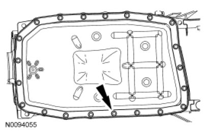Install the transmission fluid pan and tighten the bolts in a crisscross pattern.
