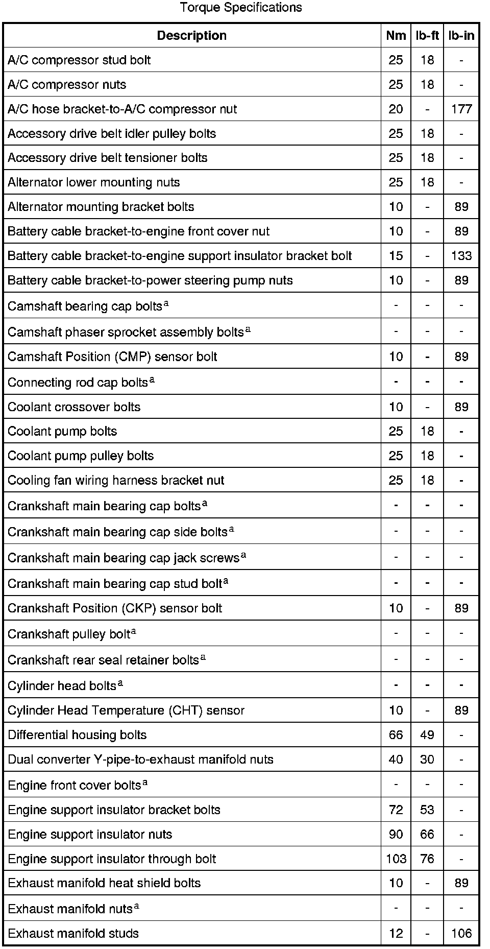 Torque Specifications