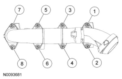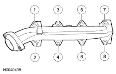 Position new gaskets, the LH exhaust manifold and tighten the 8 new nuts in the sequence shown.