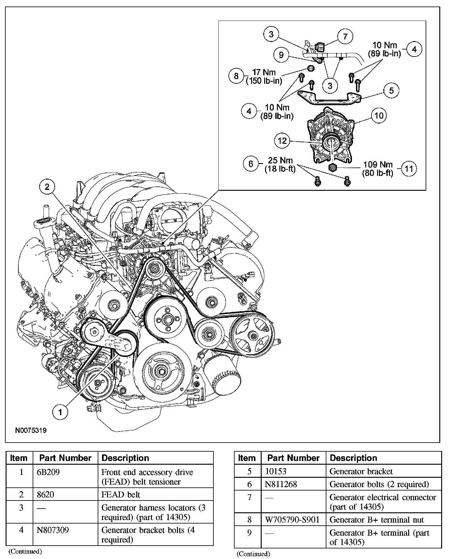 8. Position the protective cover aside, remove and discard the nut and position the generator B+ terminal aside.
